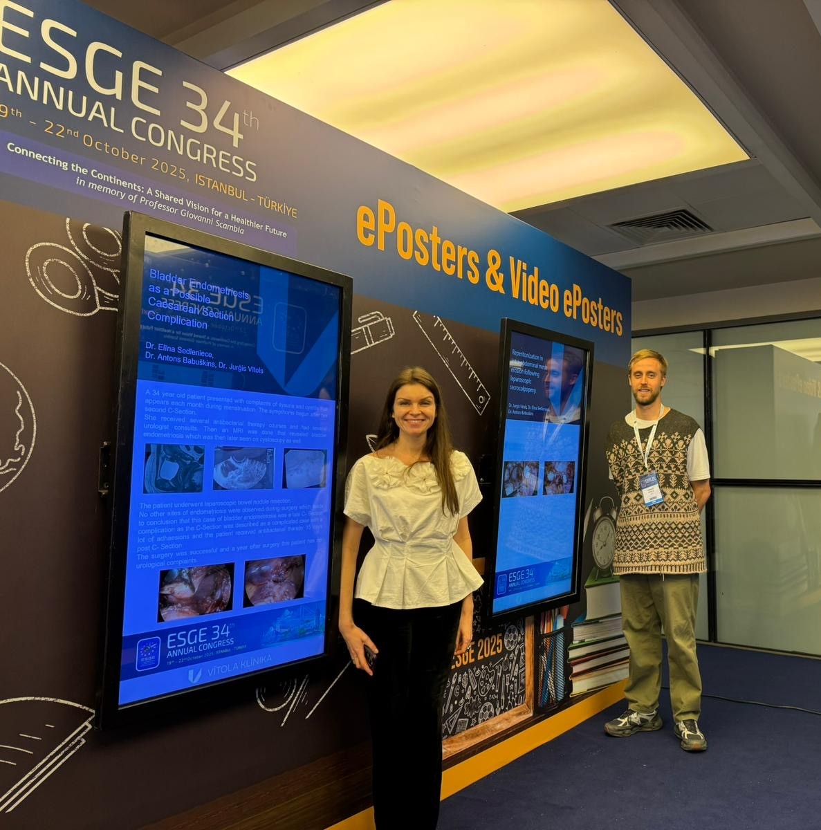 From Vītola klīnika in the congress participated Dr. Elīna Sedleniece and Dr. Jurģis Vītols. Both doctors attended sessions and also presented video posters. They shared their experience in the surgical treatment of gynaecological conditions – endometriosis and pelvic organ prolapse, which are also central focus areas at Vītola klīnika. "It’s always a pleasure to meet international colleagues at these congresses – doctors previously visited and trained with to exchange updates and discuss interesting cases from our own practice. It was especially heartwarming to receive so many congratulations from foreign colleagues on the opening of Vītola klīnika" – Dr. Jurģis Vītols.